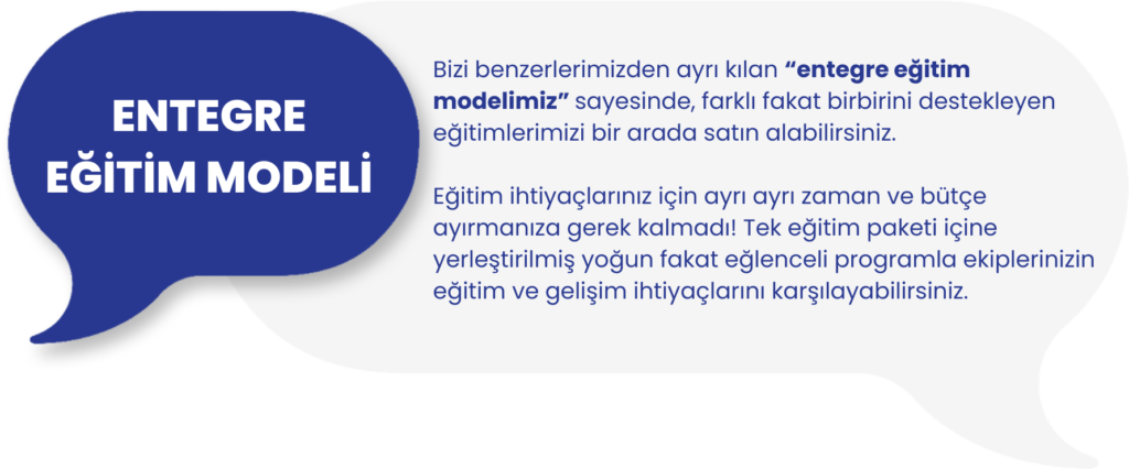 Eğitim ihtiyaçlarınız için ayrı ayrı zaman ve bütçe ayırmanıza gerek kalmadı! Tek eğitim paketi içine yerleştirilmiş yoğun fakat eğlenceli programla ekiplerinizin eğitim ve gelişim ihtiyaçlarını karşılayabilirsiniz.