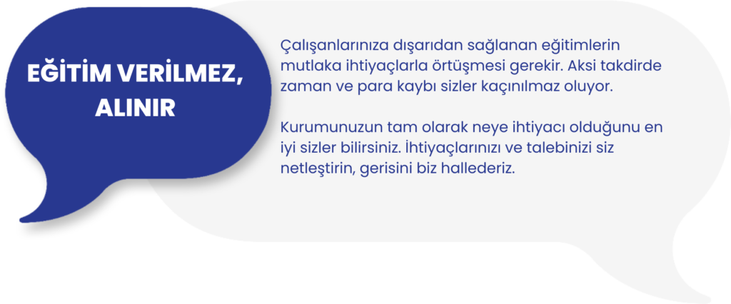 Çalışanlarınıza dışarıdan sağlanan eğitimlerin mutlaka ihtiyaçlarla örtüşmesi gerekir. Aksi takdirde zaman ve para kaybı sizler kaçınılmaz oluyor.
